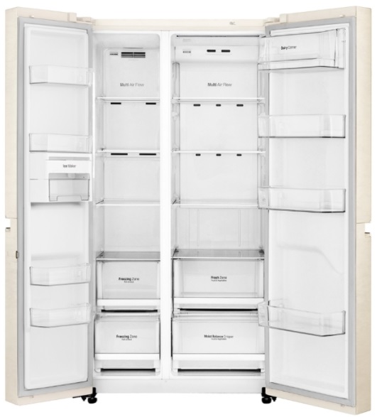 Холодильник Side-by-Side LG GC-B247SEDC ШхВхГ: 91.20х179х73.80 см общий объем: 626 л класс энергопотребления: A+ No Frost объем холодильной камеры: 406 л объем морозильной камеры: 220 л управление со смартфона инверторный компрессор количество компрессоров: один мощность замораживания: 12 кг/сутки
