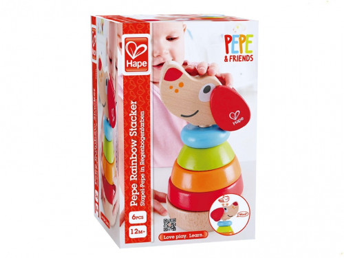 HAPE-PEPE SOUND STACKER E0448A Попробуйте сложить Пепе вместе без формы и посмотрите, сможете ли вы уравновесить шесть сложенных частей вместе! забавная складывающаяся игрушка со сладким поворотом, сложите шесть разноцветных деталей друг на друга. наблюдайте, как ваш ребенок улыбается, наблюдая, как милый щенок лает, когда его гладят по голове. Требуются две батареи LR44 (не входят в комплект) эта штабелируемая красочная деревянная игрушка помогает детям узнавать о собаках и различать их формы и цвета. этот деревянный звукоукладчик Pepe изготовлен из нетоксичного материала, обеспечивающего безопасность ребенка. Идеальная игрушка для детей от 12 месяцев и старше.