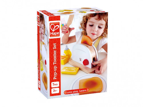 HAPE-POP UP TOASTER SET E3148A Завтрак еще никогда не был таким веселым, и детям понравится готовить и подавать завтрак своим родителям с помощью Pop-up Cake Set. Детский набор юного шеф-повара обязательно понравится вашему ребенку. Готовьте вкусные блюда для своей семьи и друзей! Количество деталей: 7 штук. Рекомендуемый возраст: от 3 лет.