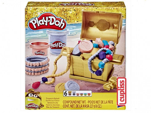PD TRESURE SPLASH E9435 Hasbro Play-Doh E9435 Сундук сокровищ Откройте сундук сокровищ, полный креативных идей! С набором из 6 упаковок массы для лепки, окрашенной в цвета драгоценных металлов, произведения малыша будут сиять! Розовое золото, серебро и золото позволят творческому процессу заиграть новыми красками и станут источником бесконечного вдохновения детей, любящих лепку. Ваш малыш сможет вылепить украшения, драгоценные камни и монеты всех оттенков благородных металлов.