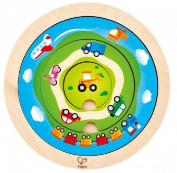 HAPE-SPINNING TRANSPORT PUZZLE E1605A С двумя разными уровнями сложности и играми с обеих сторон, Spinning Transport Puzzle - уникальная игра, которую дети полюбят вращать и разгадывать.