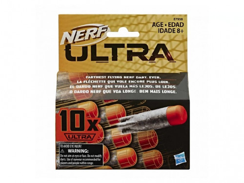 Ner Ultra Munitii 10 rezerve Бластеры серии Nerf Ultra требуют уникальных стрел. Запаситесь перед сражением дополнительным набором стрел к вашему бластеру Nerf Ultra. Набор из 10 стрел Nerf Ultra с самой большой дальностью полета! Они имеют уникальный дизайн наконечника и используют технологию Aerofin, чтобы достичь этого впечатляющего расстояния. Новаторские стрелы уникальной серии Nerf Ultra, выполнены из нового материала. Он гораздо плотнее материала стандартных стрел Nerf, но легче и безопаснее. Стрелы Nerf Ultra работают только с бластерами Nerf Ultra: они больше привычных стрел Nerf, но меньше Мега стрел. Возраст: 8+ Размер упаковки: 3,5 x 14,5 x 3,5 см Вес упаковки: 178 грамм В упаковке 10 стрел Ultra Цвет: черный с оранжевым наконечником Увеличенная дальность полета