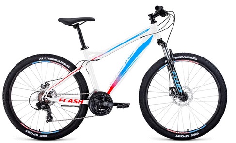 Велосипед FORWARD FLASH 26 2.2 disc (26" 21 ск. рост 17") 2020-2021, белый/голубой