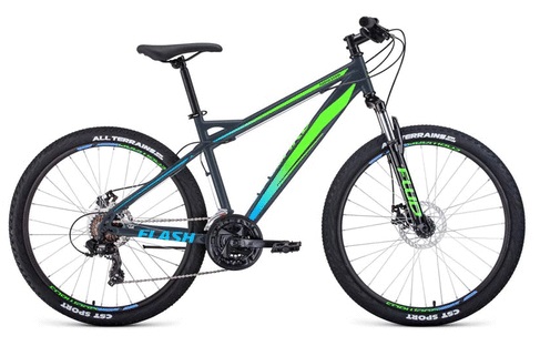 Велосипед FORWARD FLASH 26 2.2 disc (26" 21 ск. рост 17") 2020-2021, серый матовый/ярко-зеленый