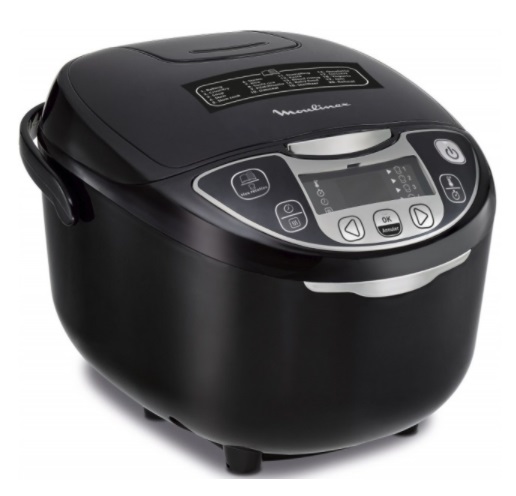 Multicooker MOULINEX MK708834, 750W, 5l ceramic container with non-stick surface, 25 programs, steaming pot, display, cooking book, black