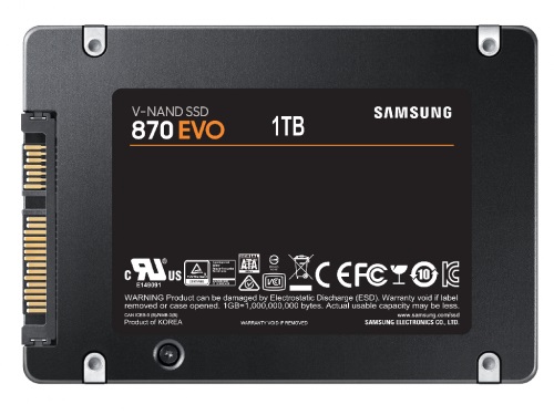 1TB SSD 2.5" Samsung 870 EVO MZ-77E1T0BW, Read 560MB/s, Write 530MB/s, SATA III 6.0Gbps (solid state drive intern SSD/внутрений высокоскоростной накопитель SSD) Самый популярный в мире SSD накопитель Последняя модель самого продаваемого в мире SSD накопителя, наконец, появилась на рынке. Накопитель 870 EVO создан на основе технологии Samsung, используемой в производстве SSD. Он отличается более высокой производительностью, надежностью и совместимостью, отвечает всем требованиям любого создателя контента, IT профессионалам и обычным пользователям. Накопитель 870 EVO с интерфейсом SATA обеспечивает максимальные скорости последовательной записи/чтеним порядка 560/530 MБ/с. Теперь каждый пользователь может воспользоваться SSD накопителем с производительностью профессионального уровня. Интеллектуальная технология записи Intelligent TurboWrite с увеличенным объемом изменяемого буфера позволяет повысить скорость записи и стабильность высоких рабочих характеристик. Накопителю гарантирована 5-летняя гарантия на рабочий ресурс не более 2400 ТБ, что свидетельствует о том, что накопитель 870 EVO полностью отвечает промышленным стандартам по надежности. Накопитель рассчитан на выполнение самых разных задач, начиная от использования в повседневной работе до обработки 8K видео. Он оснащен VNAND и MKX контроллером 6-го поколения, что обеспечивает стабильность его работы в системах любого назначения. SSD Накопитель 870 EVO успешно прошел тесты на совместимость с основными host системами и приложениями, включая чипсеты, материнские платы, NAS и устройства для записи видео. Как новый представитель наиболее продаваемых в мире SSD накопителей серии 870 EVO, подтвердивших свою универсальность, этот накопитель совместим с большинством систем и задач, выполняемых любым пользователем. Заменить стандартный 2,5-дюймовый SATA накопитель на вашем ПК или ноутбуке на SSD накопитель серии 870 QVO проще простого. Для этого достаточно вставить накопитель 870 QVO в SATA слот и загрузить миграционное ПО, которое сделает за вас все остальное. ПО поддержки работоспособности вашего SSD. Это новое улучшенное ПО Samsung Magacian 6 будет постоянно контролировать состояние и работу вашего SSD накопителя. Вы сможете легко управлять вашим накопителем с помощью разных полезных инструментов, обновлять прошивку и контролировать состояние и работоспособность накопителя и даже увеличивать его производительность. Объём накопителя 1 ТБ Тип ячеек памяти MLC V-NAND