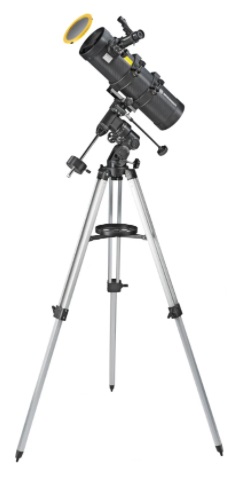 Telescop Bresser N 130-1000 Spica EQ3 Тип рефлектор Оптическая схема ньютон Диаметр объектива 130 мм Диаметр главного зеркала (апертура) 130 мм Фокусное расстояние 1000 мм Относительное отверстие f/7,7 Максимальное полезное увеличение 260 Предельная звездная величина 12.4 Разрешающая способность 1.06 " Диаметр и максимальное увеличение окуляров 4 мм, 20 мм Линза Барлоу 3x Призма оборачивающая 1,25" Искатель звездная диагональ Монтировка экваториальная Штатив напольный Длина оптической трубы 610 мм Вес 13 кг Цвет чёрный Производитель Bresser