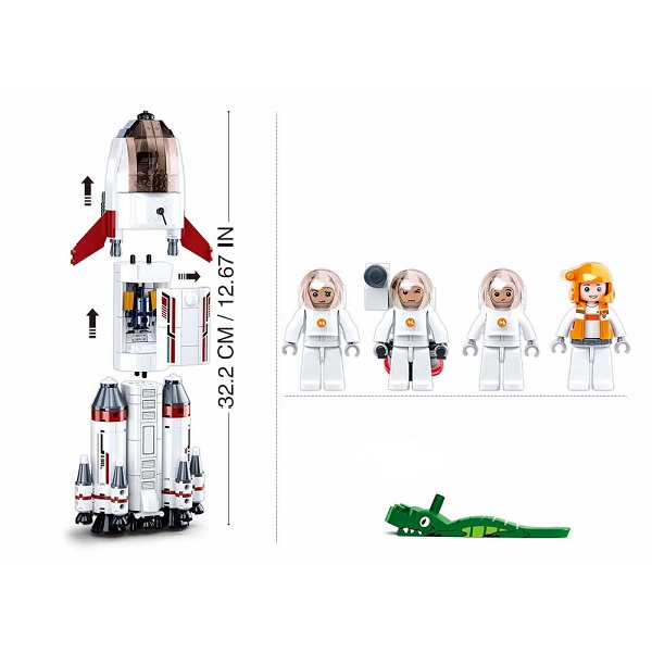 CONSTRUCTOR Space — Saturn Expedition Rocket Вес, кг 0.82 kg Размер товара 33 cm Brand SLUBAN Возрастная Группа 6-12 лет Размер коробки 48 x 29 x 7 см Серия конструктора SPACE Количество элементов 468