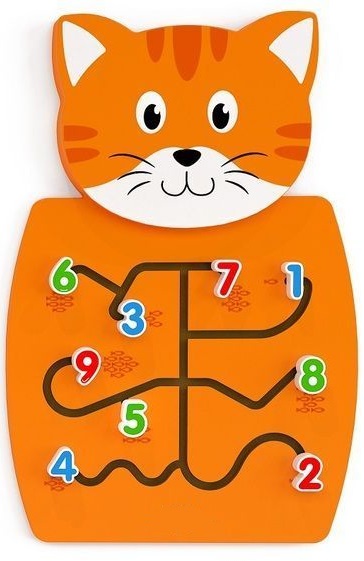 Wall Toy -Matching Numbers Эта настенная развивающая игрушка предлагает малышам, используя логику и навыки счета, правильно разместить цифры проведя их через лабиринт к нужной позиции. Цифры нужно разместить в соответствии с количеством рыбок-подсказок в конце каждой дорожки.