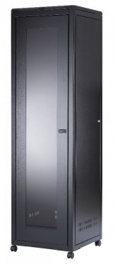 19" 18U Standard Floor Rack, SN-NO 19" 18U-06-08-ДC-ПГ-2БГ, 600х800х935/970*, Glass Door, Black