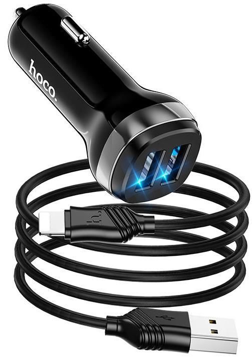 Hoco Car Charger 2xUSB with Lightning Cable Z40, Black