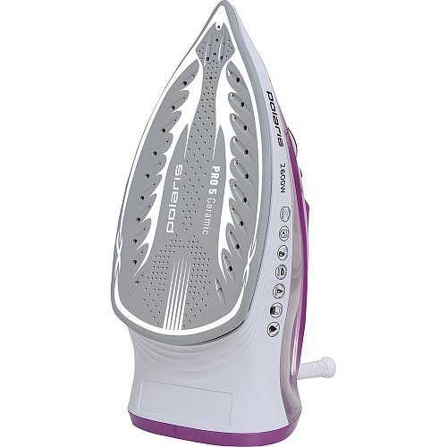 Утюг Polaris PIR2668AK, 2600W, PRO 5 ceramic, 350ml water tank capacity, horizontal and vertical steam, automatic shut off, steam 50/190 g, black violet Ультрастойкое керамическое покрытие PRO 5 Ceramic. Система автоматического отключения. Режимы работы: - сухое глажение; - постоянная подача пара (50 г/мин); - интенсивная подача пара (190 г/мин); - вертикальное отпаривание; Антикапельная система. Система защиты от накипи. Функция самоочистки. Регулировка подачи пара. Регулировка температуры. Индикатор нагрева утюга. Устройство распыления воды. Объем резервуара - 350 мл. Шарнирное вращение шнура на 360?. Мерный стакан для воды. Длина сетевого шнура 3м. Мощность: 2600 Вт. Тип подошвы Керамическое покрытие PRO 5 Ceramic Проводной режим работы Есть Вертикальное отпаривание Есть Мощность, Вт 2600 Вт Автоматическое отключение Есть Защита от накипи Есть