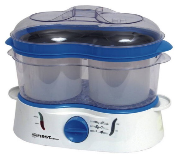 Пароварка First 005101 Количество ярусов 2 Объем паровых корзин 5,7 л Материал чаши пластик Контейнер для риса есть Долив воды во время приготовления есть Тип управления механический Мощность 900 Вт Индикатор уровня воды есть Таймер есть Материал корпуса пластик Цвет белый Производитель First