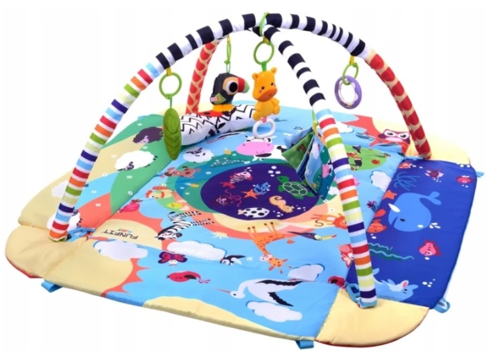Игровой коврик FunFit 2757 Форма квадратный Размеры 109x52x96 cm Материал текстиль, пластик Цвет разноцветный Расцветка разные зверюшки Вес 1700 гр Дополнительно в комплекте 30 шариков Производитель FunFit