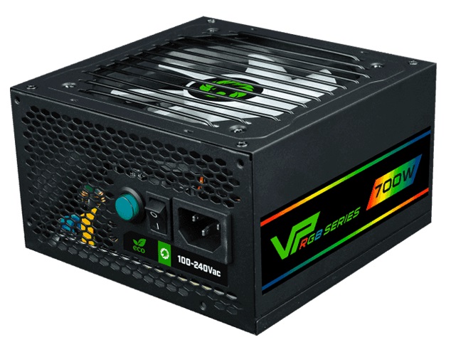 Power Supply ATX 700W GAMEMAX VP-700, 80+ Bronze , Active PFC, 120mm RGB fan, Fan Control PFC: Активная Бренд: Gamemax Мощность: 700 Вт Сертификация: Bronze Система охлаждения: 1 x 120 mm Стандарт: ATX 12V 2.3 Особенности: RGB Частота тока: 50-60 Гц Размеры: 140 x 150 x 86 мм