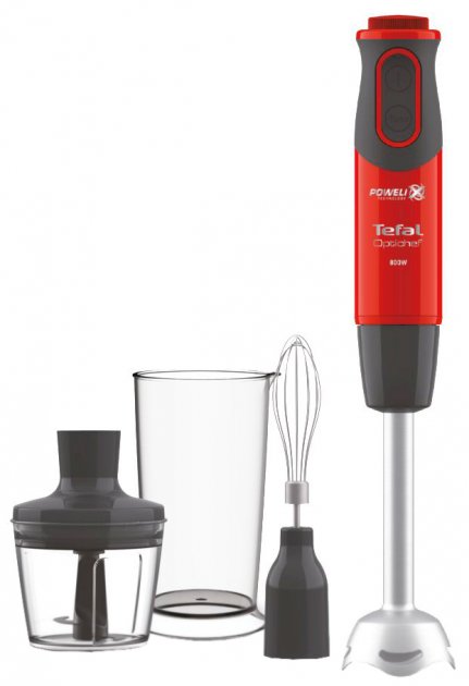Блендер Tefal HB643538, 800W power output, mixing bowl 0.8l, chopper bowl 0.5l, foot stainless steel, 20 speed levels plus turbo level, red Мощность, Вт 800 Емкость стакана 800 мл Тип Погружной Материал ножки блендера Металл Габариты (ВхШхГ) 41 х 7 х 7 см