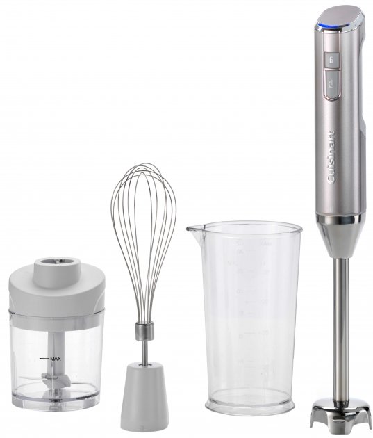 Блендер Cuisinart RHB100E, 250W power output, plastic foot, 2 speeds level, white Тип погружной Мощность 400 Вт Измельчитель есть Объем чаши 0.25 л Венчик для взбивания есть Насадка для пюре есть Мерный стаканчик есть Объем мерного стакана 0.8 л Материал корпуса пластик Материал погружной части нержавеющая сталь Цвет серебристый Вес 0.6 кг