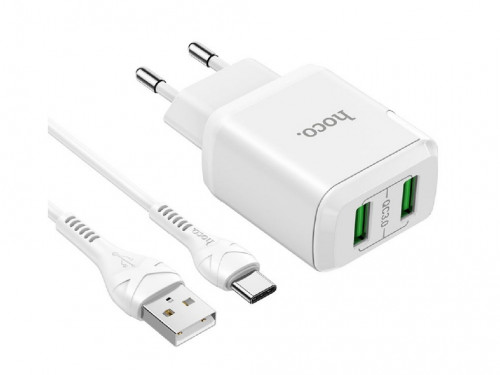 Hoco N6 Charmer Dual Port QC3.0 Charger Set(Type-C)(EU), WhiteHoco N6 Charmer Dual Port QC3.0 Charger Set(Type-C)(EU), White