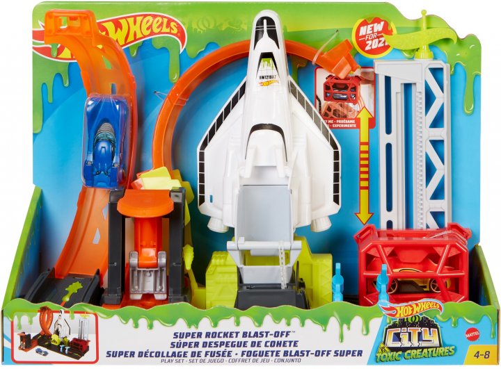 HW "Lansarea Rachetei" Virsta: 4+ Pentru: Baie?i HW Set "Lansarea Rachetei" Naveta spatiala se ridica atunci cand o masina este lansata direct in ea, prezentand o oportunitate provocatoare de a experimenta cu forta si scopul lansatorului de stand. O manivela controleaza cabina rotativa a fortei G care emuleaza efectele gravitatiei zero. Cand aterizeaza, naveta scoate automat masina si o propulseaza pe pista care se poate conecta la alte seturi Hot Wheels City (se pot achizitiona separat). Include: 1 set de joaca, 1 masina Varsta recomandata: 4 ani + Возраст: 4+ Для: Мальчиков Hot Wheels Набор "Запуск супер ракеты" Теперь вы можете запускать Hot Wheels машинки в открытый космос! С этим игровым набором от Hot Wheels вас ждут приключения за пределами нашей планеты! Используйте манипуляторы, чтобы убедиться в исправности всех систем, прежде чем попасть в кабину G-Force для космических тренировок. После тренировки загрузите машинку в пусковое устройство и отправьте ее через петлю прямо в шаттл, который мгновенно взлетит к звездам! Когда шаттл вернется, он переместит автомобиль на пандус, ведущий к следующей миссии. В наборе вы найдете одну машинку Hot Wheels в масштабе 1:64, с которой вы сможете тут же проделать этот невероятно зрелищный трюк! В комплекте: 1 игровой набор, 1 машинка Для детей 4-8 лет.