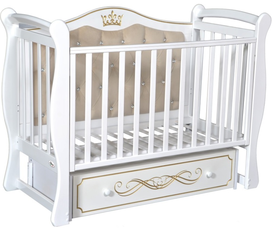 1073 Детская кровать Oliver Brianna (белый) Тип классическая Материал дерево Качающий механизм маятник (универсальный) Кол-во уровней днища 2 Днище реечное Торцевые стенки реечные Боковые стенки реечные/глухие Съемная боковина Регулировка высоты боковины Накладки грызунки Ящик / корзина для белья Украшена стразами Спальное место 120x60 см Размеры кроватки 142x65x108 см Вес 37 кг