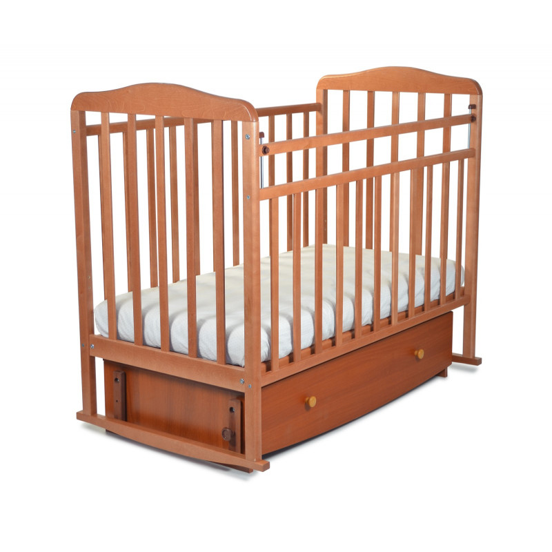 163007 Кровать детская Митенька (опуск.планка, качалка, закр.ящик, попер.маятник, орех) (размер ложа 1200х600 мм)