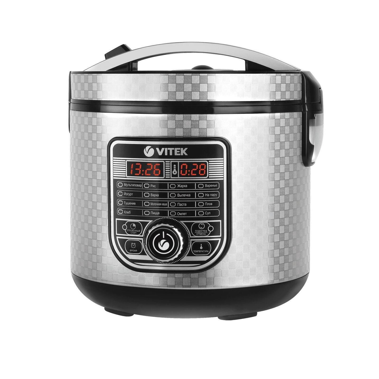 Мультиварка VITEK VT-4282, 860W, 5l container with non-stick surface, 16 Programs, LED display, gray Объём чаши, л 5 Материал чаши алюминий Антипригарное покрытие PTFE Тип управления электронный Дисплей: да Отсрочка запуска, ч 24 Количество программ 16 Установка времени приготовления, ч 24 Мощность, Вт 860 Поддержание тепла да Приготовление на пару да Рис/Гречка да Каша да Плов да Тушение да Выпечка да Разогрев да Жарка да Cпагетти да Автоотключение да Индикация режима работы да Индикация времени до конца программы да Контейнер-пароварка да Мерная чаша да Ложка да Цвет серый Доп. особенности книга рецептов Производитель Vitek