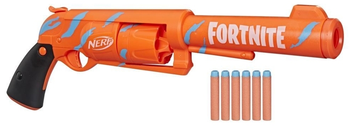 Nerf Fortnite 6 SH тип: бластер тип боеприпасов: патроны количество боеприпасов в комплекте: 6 шт. вместимость магазина: 6 шт. состав набора: бластер комплектация: бластер, барабан, 6 патронов, инструкция тематика: герой видеоигр тема: Nerf, Fortnite, Hasbro длина: 35 см ширина: 6 см вес: 650 г