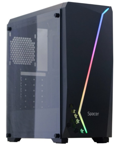 Case SPACER - gaming, Middle Tower, ATX, FLASH, fara sursa, sticlasecurizata, USB 2.0 x 2, USB 3.0 x 1, PSU shroud, black SPCS-GC-FLASH