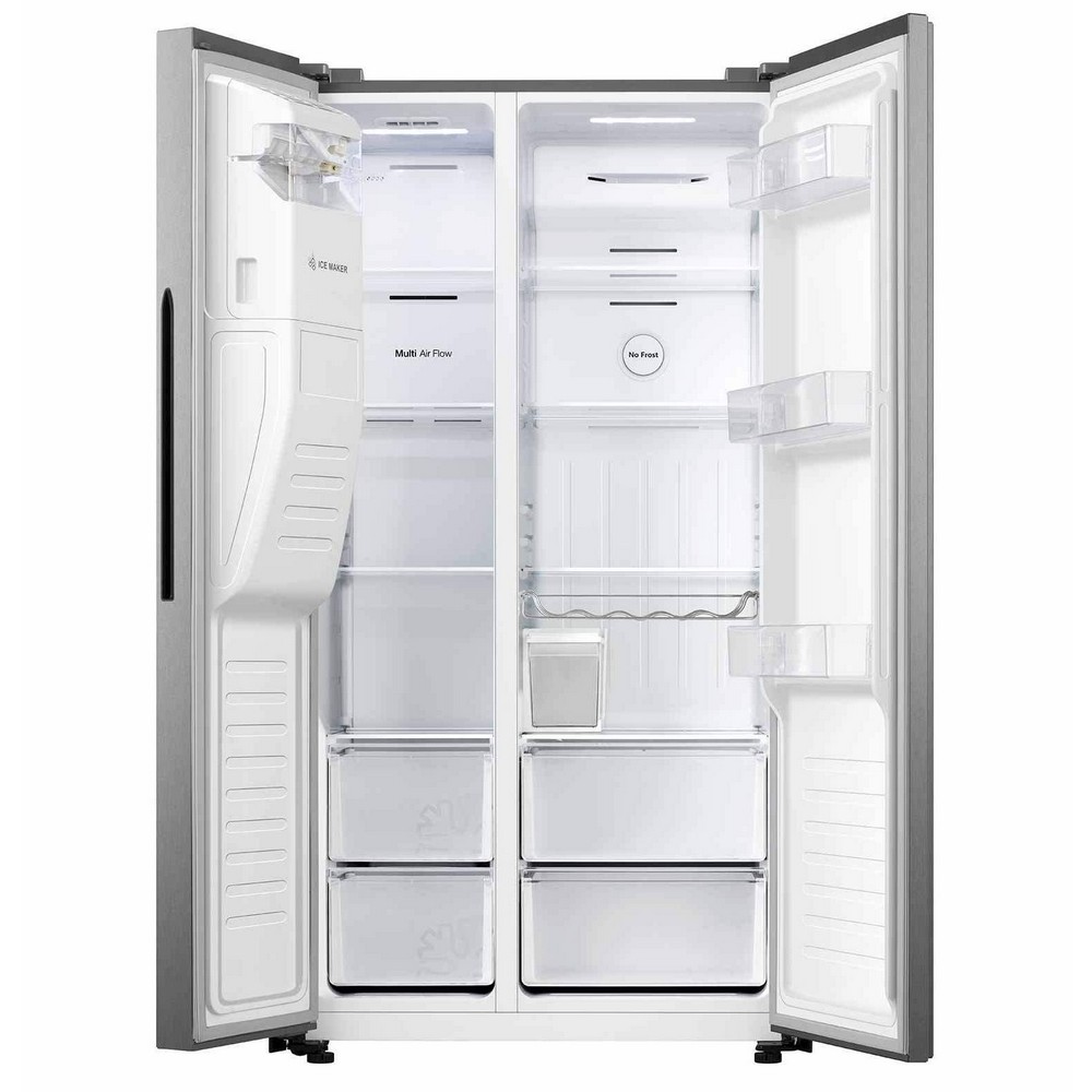 Холодильник Side-by-side Hisense RS650N4AC2 Тип Side-by-Side Расположение морозильной камеры сбоку Тип управления электронное Дисплей да Общий полезный объем 499 л Объем холодильного отделения 334 л Объем морозильного отделения 165 л Диспенсер да Размораживание холодильной камеры No Frost Размораживание морозильной камеры No Frost Материал полок стекло Количество полок 4 Полка для вина да Ящик для овощей и фруктов 2 Количество отделений в морозилке 6 Количество компрессоров 1 Инвертор да