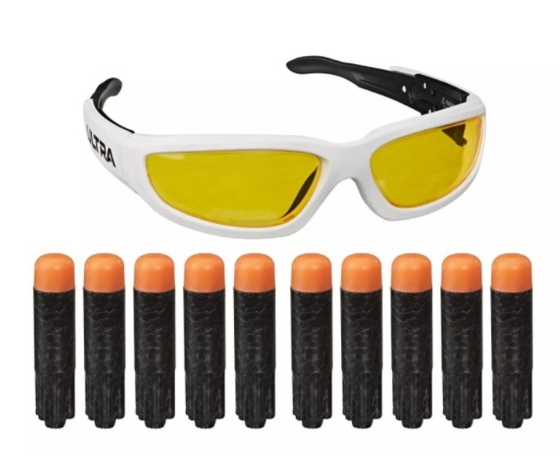 NER ULTRA VISION GEAR Тип аксессуары Размер 245x160x45 mm Материал пластик , вспененая резина Минимальный возраст от 8 лет Патроны в комплекте да В наборе 10 стрел , очки Вес 120 гр Производитель Hasbro