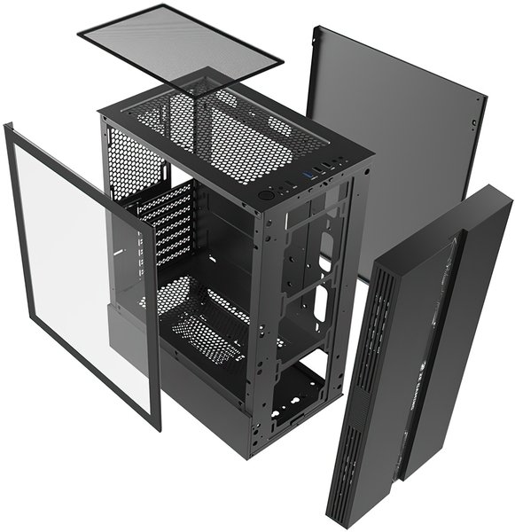 2E GAMING Computer case RUNA (G2107) MidT, 2xUSB2.0, 1xUSB3.0,1x120mm ARGB+ ARGB strip,TG (side panel),without PSU,black