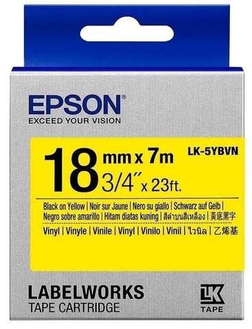 Tape Cartridge EPSON LK-5YBVN; 18mm/7m Vinyl, Black/Yellow, C53S655028Tape Cartridge EPSON LK-5YBVN; 18mm/7m Vinyl, Black/Yellow, C53S655028