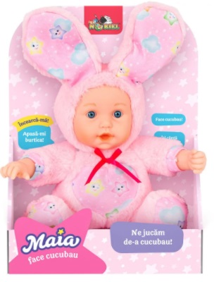 Papusa Maia - Face Cucubau Возраст: 3+ Для: Девочек Нориэль Kукла "Майя делает Кукубау" Майя любит играть в кукубау! Нажмите на ее живот, и ее уши поднимутся, и Майя будет играть с вами. Если вы хотите послушать песню, быстро щелкните дважды на живот Майи и будьте готовы спеть вместе с ней! В комплекте: 1 кукла Mайя. Рекомендуемый возраст: 3 года + Virsta: 3+ Pentru: Feti?e Noriel Papusa "Maia face Cucubau" Maia adora sa se joace cucubau! Apasa-i burtica, iar urechile i se vor ridica si Maia se va juca cu tine. Daca vrei sa auzi un cantecel, apasa rapid de doua ori pe burtica Maiei si fii gata sa canti impreuna cu ea! Continut: 1 papusa Maia Varsta recomandata: 3 ani +