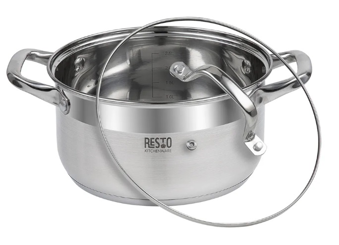 Pot with lid RESTO Rigel 92003-20cm Тип Кастрюля Объем, Л 3,6 л Размер крышки, см 20 Диаметр дна, см 18 Антипригарное покрытие Нет