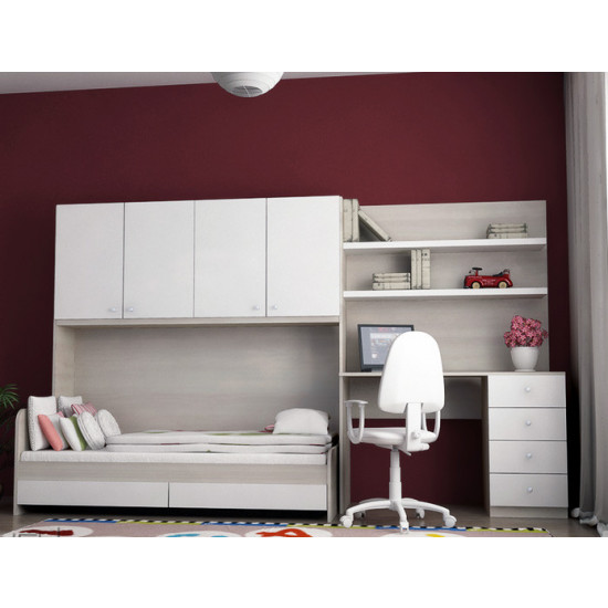 экологические материалы: материал - ЛДСП 18мм кромка АБС - пластик противоударный; Габаритные размеры стенки: Ширина: 300 см Высота: 200 см Глубина:50 см Габаритные размеры кроватки: Ширина: 170 см Высота: 65 см Глубина:80 см Indart ДЕТСКИЙ ГАРНИТУР 06