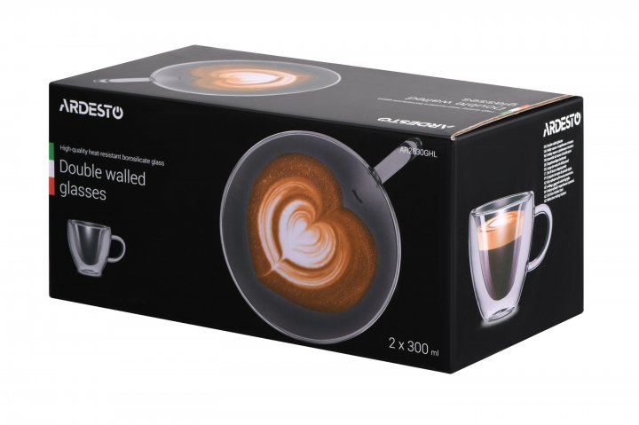 Набор чашек с ручками Ardesto с двойными стенками, 300 мл, H 9,5 см, 2 шт, боросиликатное стекло
