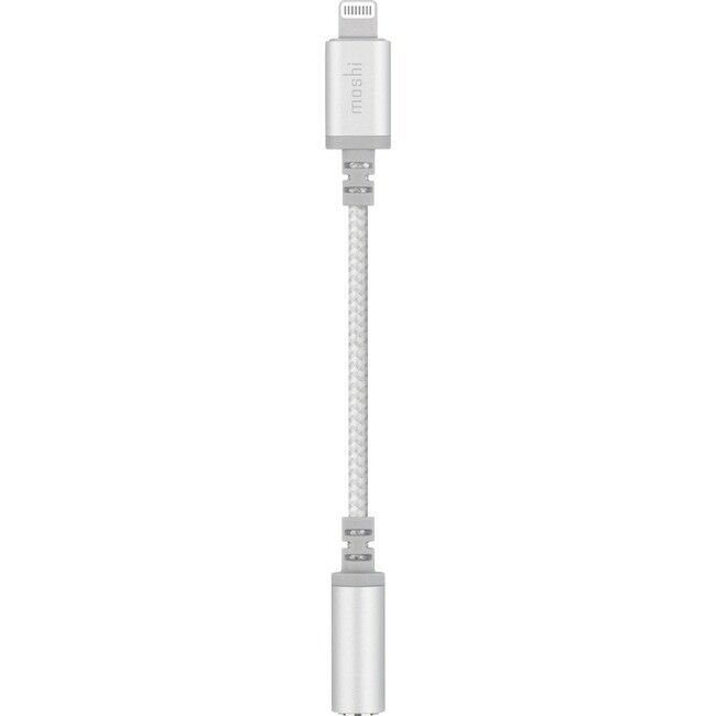 Audio Adapter MOSHI Lightning / jack 3.5mm F, Silver Lightning to 3.5 mm headphone jack adapter Listen to music on your iPhone using regular headphones with Moshi’s MFi certified Integra™ Headphone Jack Adapter. Features Reinforced IntegraCore™ s