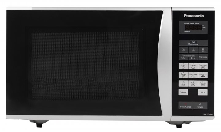 Microwave Oven Panasonic NN-ST342MZPE Тип Обычная (соло) Цвет Серебристый (серый) Способ установки Отдельностоящая Тип управления Электронное Мощность СВЧ 800 ВтMicrowave Oven Panasonic NN-ST342MZPE
