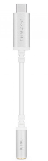 Audio Adapter MOSHI Type-C M / jack 3.5mm F, Silver USB-C to 3.5 mm stereo jack adapter This USB-C adapter lets you listen to music from your device’s USB-C port using regular headphones. A built-in DAC outputs high-resolution audio and features a Cl