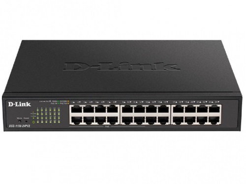 24-port Gigabit EasySmart POE Switch, DGS-1100-24PV2/A1A, 12xPOE ports, 100W Budget Коммутатор D-Link DGS-1100-24PV2/A1A 24G 12PoE+ 100W настраиваемый Настраиваемый коммутатор серии EasySmart DGS-1100-24PV2, оснащенный 24 портами 10/100/1000Base-T (12 портов с поддержкой PoE), предназначен для использования в сетях предприятий малого и среднего бизнеса. Поддержка PoE делает коммутатор DGS-1100-24PV2 оптимальным решением для организации видеонаблюдения. Функции управления, диагностики, поиска и устранения неисправностей, а также энергосберегающие технологии позволяют использовать DGS-1100-24PV2 для решения различных задач. Энергосберегающая технология D-Link Green Коммутатор DGS-1100-24PV2 соответствует стандарту IEEE 802.3az Energy Efficient Ethernet и потребляет меньше электроэнергии при небольшом объеме трафика. Использование совместимых с EEE устройств позволяет предприятиям малого и среднего бизнеса экономить денежные средства благодаря сокращению эксплуатационных расходов, в том числе связанных с покупкой оборудования для охлаждения. DGS-1100-24PV2 также поддерживает технологию D-Link Green, обеспечивающую автоматическое сокращение энергопотребления. Коммутатор определяет статус соединения на каждом порту и обеспечивает автоматическое отключение питания неактивных портов. Простое управление Коммутатор DGS-1100-24PV2 поддерживает управление с помощью специальной утилиты D-Link Network Assistant, а также через Web-интерфейс. Утилита позволяет обнаружить коммутаторы D-Link серии Smart, принадлежащие одному и тому же сегменту сети L2, что упрощает начальную установку коммутатора. Администратору доступна расширенная конфигурация и основные настройки обнаруженных устройств, например смена пароля и обновление программного обеспечения. Удобный Web-интерфейс предоставляет сетевым администраторам возможность управления коммутатором на уровне портов. Интерфейс доступен через Web-браузер и позволяет контролировать работу коммутатора с любого компьютера, подключенного к сети. Surveillance VLAN и управление полосой пропускания Коммутатор DGS-1100-24PV2 поддерживает технологию Surveillance VLAN для развертывания систем видеонаблюдения. Данный функционал выделяет видеотрафик в отдельную VLAN, внутри которой для него назначен наивысший приоритет обслуживания. Поддержка Surveillance VLAN обеспечивает качественную передачу и защиту видеотрафика и позволяет сократить расходы, связанные с приобретением дополнительного оборудования. Функция управления полосой пропускания позволяет сетевым администраторам резервировать полосу пропускания для приложений, которым необходим максимальный приоритет или высокая пропускная способность канала связи. Расширенный набор функций Коммутатор DGS-1100-24PV2 поддерживает расширенные функции безопасности, такие как Static MAC, защита от сетевого шторма и IGMP Snooping. Функция Static MAC позволяет создать «белый» список MAC-адресов, разрешающий доступ только авторизованным устройствам. Функция защиты от сетевого шторма необходима для ограничения до заданного порога широковещательного, многоадресного или неизвестного одноадресного трафика. Коммутатор блокирует или отбрасывает пакеты, попадающие под действие данного ограничения, так как большое количество такого трафика может привести к перегрузке сети. Функция IGMP Snooping позволяет сократить количество многоадресного трафика и увеличить производительность сети. Простой поиск и устранение неисправностей Коммутатор D