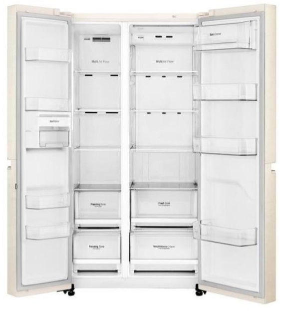 Холодильник Side-by-Side LG GC-B247SEDC Общий полезный объём, л 626 Объём холодильной камеры, л 406 Объём морозильной камеры, л 220 Высота, см 179 Ширина, см 91.2 Глубина, см 73.8 Вес, кг 113 Вес в упаковке, кг 124 Количество дверей 2 Антибактериальное покрытие да Мини-бар да Количество компрессоров 1 Хладагент R610a Энергопотребление в год, КВт 438 Тип подсветки LED Освещение холодильной камеры да Мощность замораживания, кг в сутки 12 Автономное сохранение холода, ч 10 Уровень шума, дБ 39 Дисплей да Тип управления электромеханический Материал фасада металл Зона сохранения свежести да Материал полок стекло / пластик Дверные ручки скрытые Управление со смартфона Управление со смартфона (Умный Дом) да Управление Smart Diagnostics Тип подключения Wi-Fi Цвет бежевый Производитель LG
