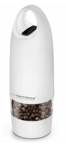 Grinder Esperanza MUNTOK EKP003W White, LED illumination during use Adjustable grinding thickness Length: 17cm Diameter: 5cm Power: 4* AA batteries (not included)