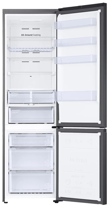 Refr/com Samsung RB38T676FB1/UA (203см/400л/А+/Full NoFrost) Холодильник комби, нижнее распололожение морозильника Размораживание - Full NoFrost Общий объем 360 л. Объем холодильной камеры 273 л Объем морозильной камеры 112 л
