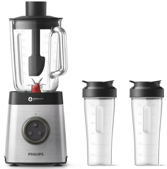 Blender Philips HR3655/00, 1400W power output, mixing bowl 1,8L, 4 speed levels plus pulse level, silver Максимальная мощность 1400 Вт. Материал кувшина стекло Материал корпуса металл Емкость кувшина 2 л Количество скоростей 4 Управление электронное В комплекте дорожная бутылка Дополнительные функции колка льда, плавная регулировка скорости Особенности конструкции нескользящие ножки, отверстие для ингредиентов, отсек для шнура