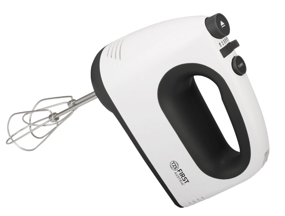 FIRST 005263-3 Тип ручной Мощность 300 Вт Количество скоростей 5 Турборежим да Крюки для теста да Венчики для взбивания да Кнопка отсоединения насадок да Материал корпуса пластик Цвет белый Производитель FirstFIRST 005263-3