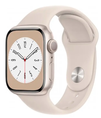 Apple Watch Series 8 GPS, 41mm Starlight Aluminium Case with Starlight Sport Band, MNP63