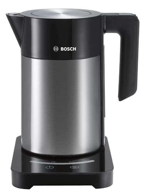 BOSCH TWK7203 Объем 1.7 л Материал корпуса металл Мощность 2200 Вт Доп. функции поддержание тепла Безопасность блокировка включения без воды, блокировка крышки, отключение при снятии с подставки Особенности вращение на 360 градусов, двойные стенки, индикатор уровня воды, индикация включения, сенсорное управление, фильтр Тип нагревательного элемента закрытая спираль Возможность выбора температуры есть Вес 1.8 кг