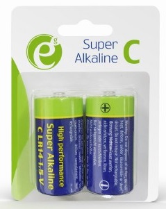 C size Energenie EG-BA-LR14-01 1.5V, Alkaline, Blister*2 Щелочная батарея LR14 типоразмера "C", 1.5 Вольта Высокая энергоэффективность и время работы Одноразовая батарея, не заряжать