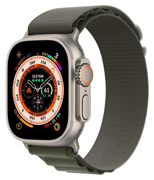 Apple Watch Ultra GPS + Cellular, 49mm Titanium Case with Green Alpine Loop - Large, MQFP3