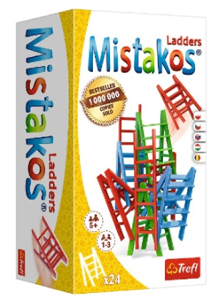 Trefl 2180 Game Mistakos Ladders Возраст: 3+ Для: Всех Игра Mistakos Лестницы - это классическая аркадная игра для всей семьи! Набор содержит 24 лестницы - 8 синих, 8 зеленых и 8 красных. Игра раcсчитана от 1 до 3 игроков. Правила игры: 1. Каждый игрок выбирает себе набор одинаковых по цвету лестниц. Начинает самый младший игрок, ставя 1 лестницу в центр стола. 2. Затем другие игроки по очереди добавляют по одной из своих лестниц, учитывая то, что стола может касаться только первая поставленная лестница 3. Если во время хода кого-то из игроков выстроеная башня пострадает, он должен будет забрать себе все упавшие лестницы, но сохраняет за собой право поставить лестницу на конструкцию. Выиграет тот игрок, кто первый избавиться от всех стульев! Рекомендуемый возраст: от 5 лет Virsta: 3+ Pentru: Ambisex Mistakos Ladders este un joc arcade clasic pentru intreaga familie! Setul con?ine 24 de scari - 8 albastre, 8 verzi ?i 8 ro?ii. Jocul este conceput pentru 1-3 jucatori. Regulile jocului: 1. Fiecare jucator i?i alege un set de scari de aceea?i culoare. Incepe cel mai tanar jucator, a?ezand o scara in mijlocul mesei. 2. Apoi ceilal?i jucatori, rand pe rand, adauga una dintre scarile lor la gramada. Doar prima scara are voie sa atinga masa. 3. Daca un jucator i?i adauga scara la gramada ?i cade vreuna dintre ele, jucatorul trebuie sa ia toate scarile cazute. Dar tot poate sa adauge o scara la gramada. Ca?tiga jucatorul care scapa primul de toate scarile! Varsta recomandata: de la 5 ani
